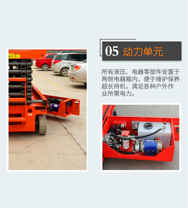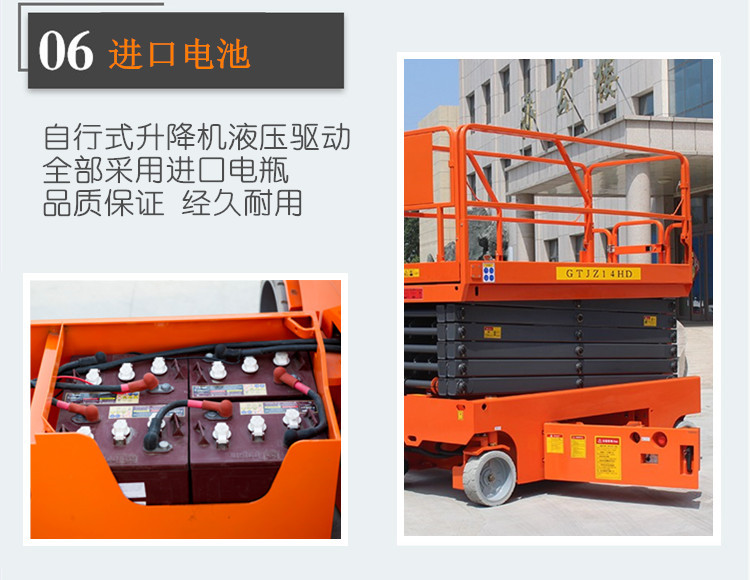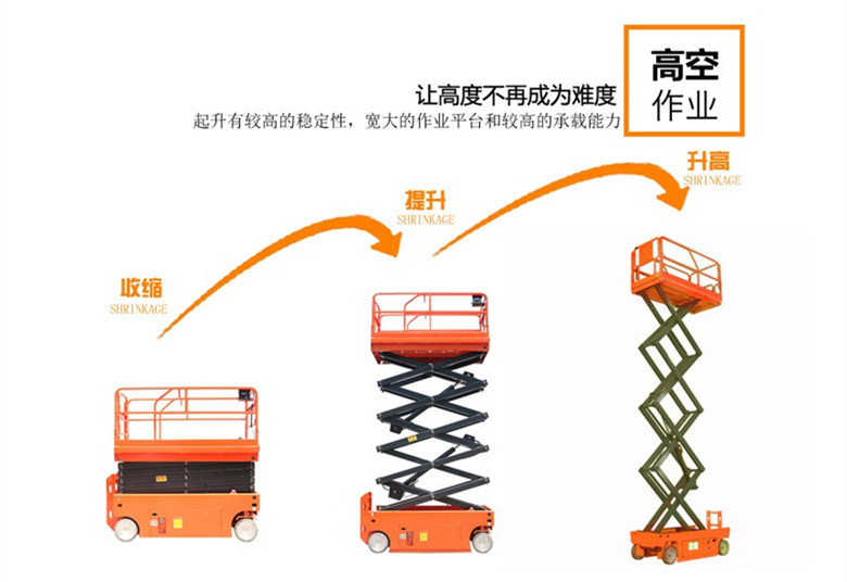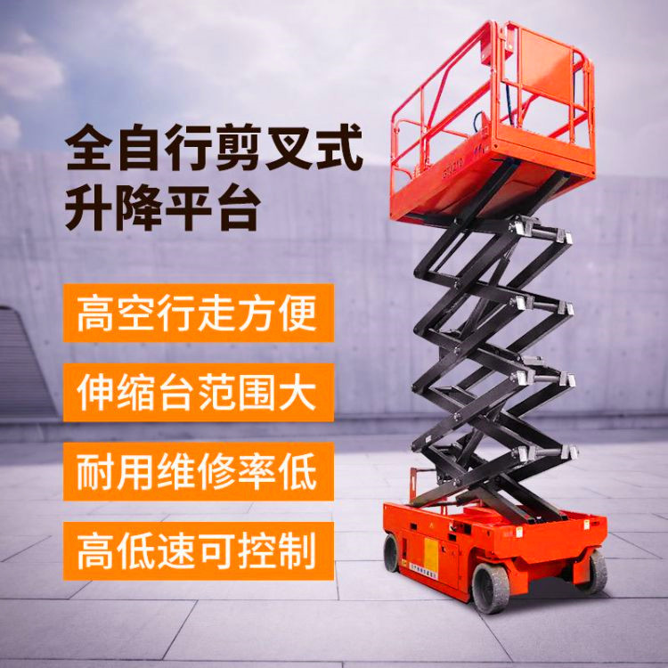 自行式剪叉式升降機(jī)使許多困難危險(xiǎn)的工作變得更加容易化,這種升降平臺(tái)的特點(diǎn)是小巧靈活,方便快捷,可以用一部升降平臺(tái)代替腳手架來(lái)達(dá)到您需要的高度,解決您的難題。例如:路燈和交通標(biāo)志的裝置和維護(hù),外墻清洗室內(nèi)清潔,廣告牌的裝置和維護(hù)等。同時(shí),還可以節(jié)省您的費(fèi)用和寶貴的時(shí)間。 自行式液壓升降平臺(tái)的主要特點(diǎn)是:使用人員可以不用下升降臺(tái)就可控制機(jī)械升降、行走,可在臺(tái)面上控制設(shè)備行駛到其他的工作地點(diǎn)。設(shè)備自身具有行走及轉(zhuǎn)向驅(qū)動(dòng)功能,不需人工牽引,不需外接電源。移動(dòng)靈活方便,令高空作業(yè)更方便快捷,是現(xiàn)代企業(yè)高效安全生產(chǎn)之理想高空作業(yè)設(shè)備。 特別適用于車站、碼頭、機(jī)場(chǎng)、電廠、體育場(chǎng)館、大型企業(yè)等較大范圍的高空作業(yè)。