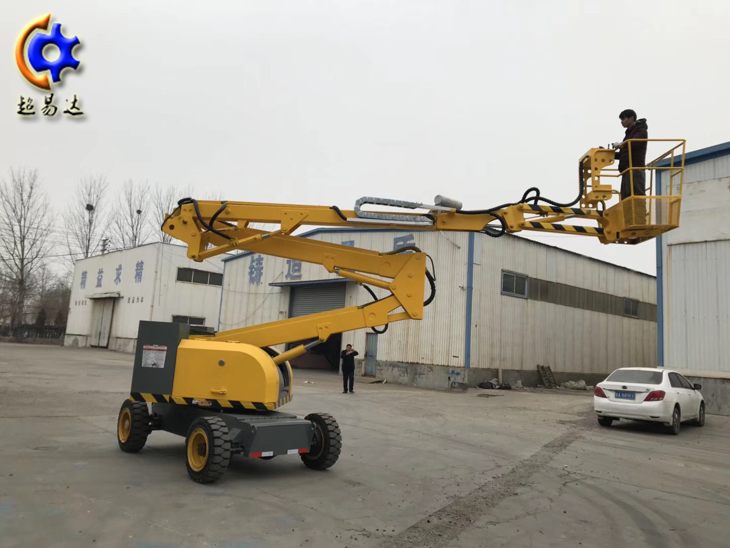 自行曲(折)臂式升降機(jī)升高時(shí)候是曲折狀態(tài)的,升降平臺(tái)的結(jié)構(gòu)采用了機(jī)電液一體化、可靠性設(shè)計(jì)和計(jì)算機(jī)輔助設(shè)計(jì)等技術(shù),是一種全液壓驅(qū)動(dòng)、自行式專用底盤。突破了以往國(guó)內(nèi)高空作業(yè)升降機(jī)只能采用汽車或起重機(jī)底盤改裝設(shè)計(jì)的限制。